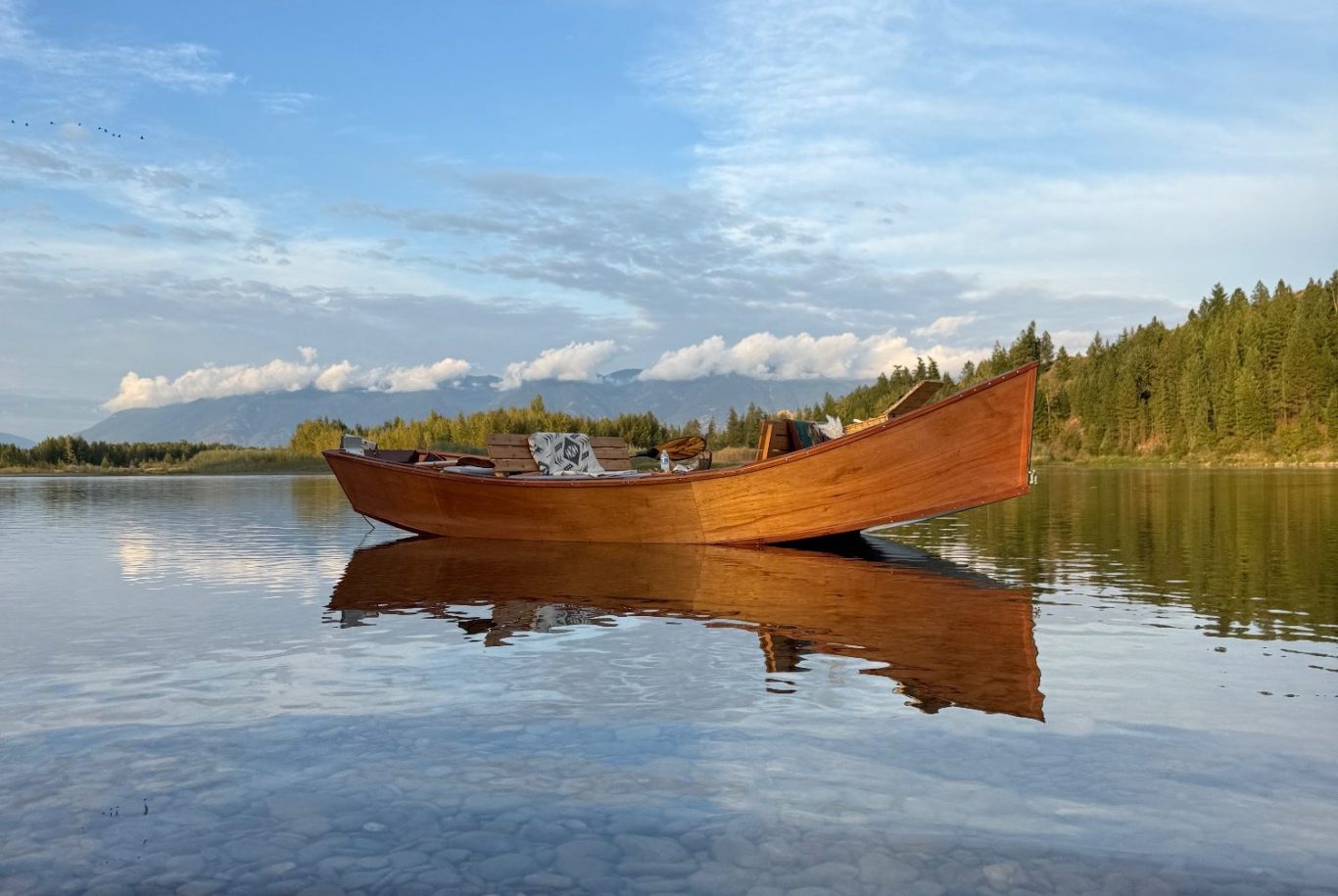 I tried to order a boat for summer 2024. Timelines didn’t line up. So I drove to Glacier Hardwoods in South Kalispell, loaded the truck, and built one. Six weeks later — on Mother’s Day 2024 — our first six-person, handcrafted wooden drift boat slid into the current. The boat settled, the river took hold, and I knew we were onto something simple and right.